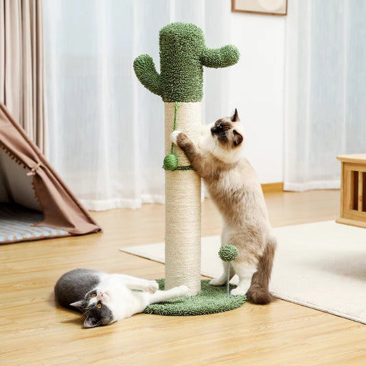 Cactus Cat Tree Scratcher with Hanging Ball Fully Wrapped Sisal Scratching Post and Pad for Indoor Stable Furniture Protectors