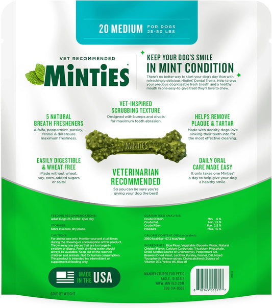 Vet-Recommended Mint-Flavored Dental Chews for Medium Dogs (25-50 lbs) - 20 Count, Promotes Oral Health by Reducing Plaque, Tartar, and Bad Breath